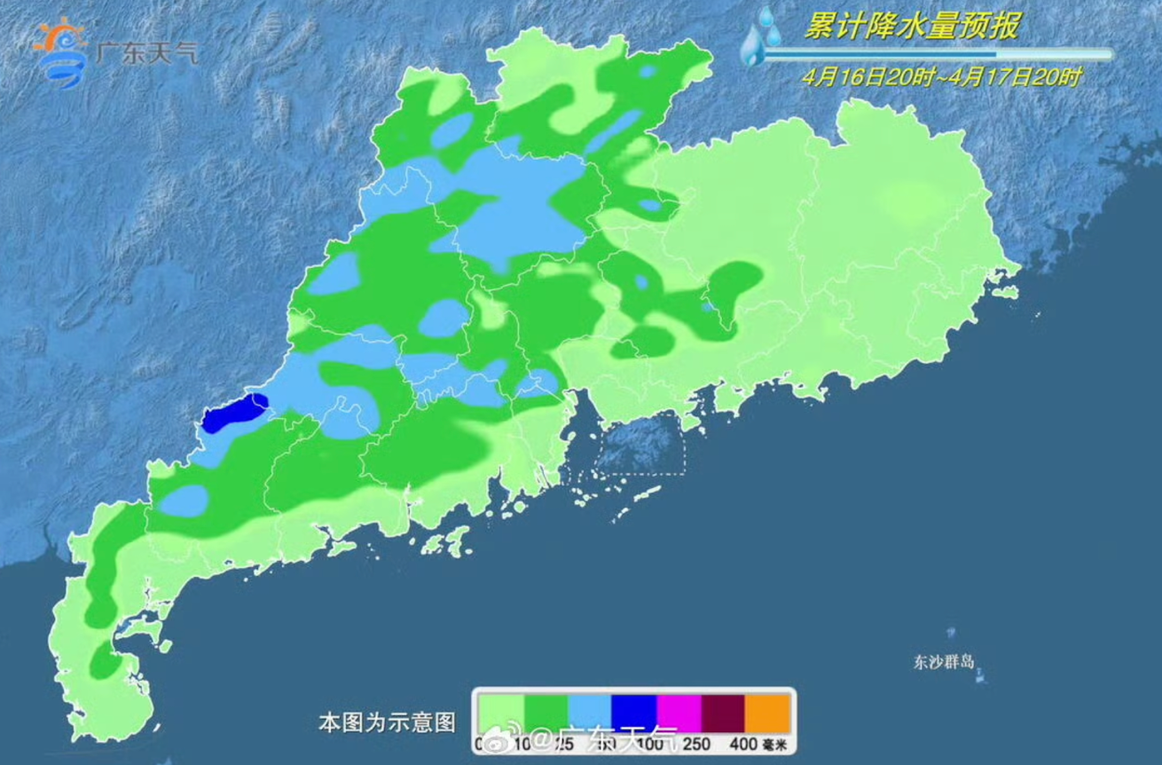 据悉,16日至17日,粤北、珠江三角洲和粤西市县将有一次中到大雨局部暴雨的降水过程,部分市县伴有8-9级短时大风、短时强降水等强对流天气。18日至19日,粤西市县局部仍有暴雨。今年以来全省气温总体偏高,气候不确定性进一步加剧,且本次降雨过程伴有短时大风等强对流天气,致灾风险较高。