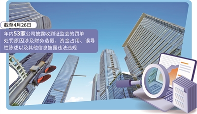 据同花顺iFinD数据统计,截至4月26日,年内53家公司披露收到证监会的罚单(含行政处罚决定书、行政处罚事先告知书),处罚原因涉及财务造假、资金占用、误导性陈述以及其他信息披露违法违规。其中,10家为退市公司,8家为退市后再收罚单,日韩在线精品一区立方数科股份有限公司、长江医药控股股份有限公司2家公司因严重造假收罚单后被强制退市。